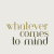 Rather than pursuing excellence or accomplishment, I want to rediscover enjoyment. I want to write, just because I love to write, and I want to write what I enjoy writing. Thus began this Blog, Whatever Comes to Mind.